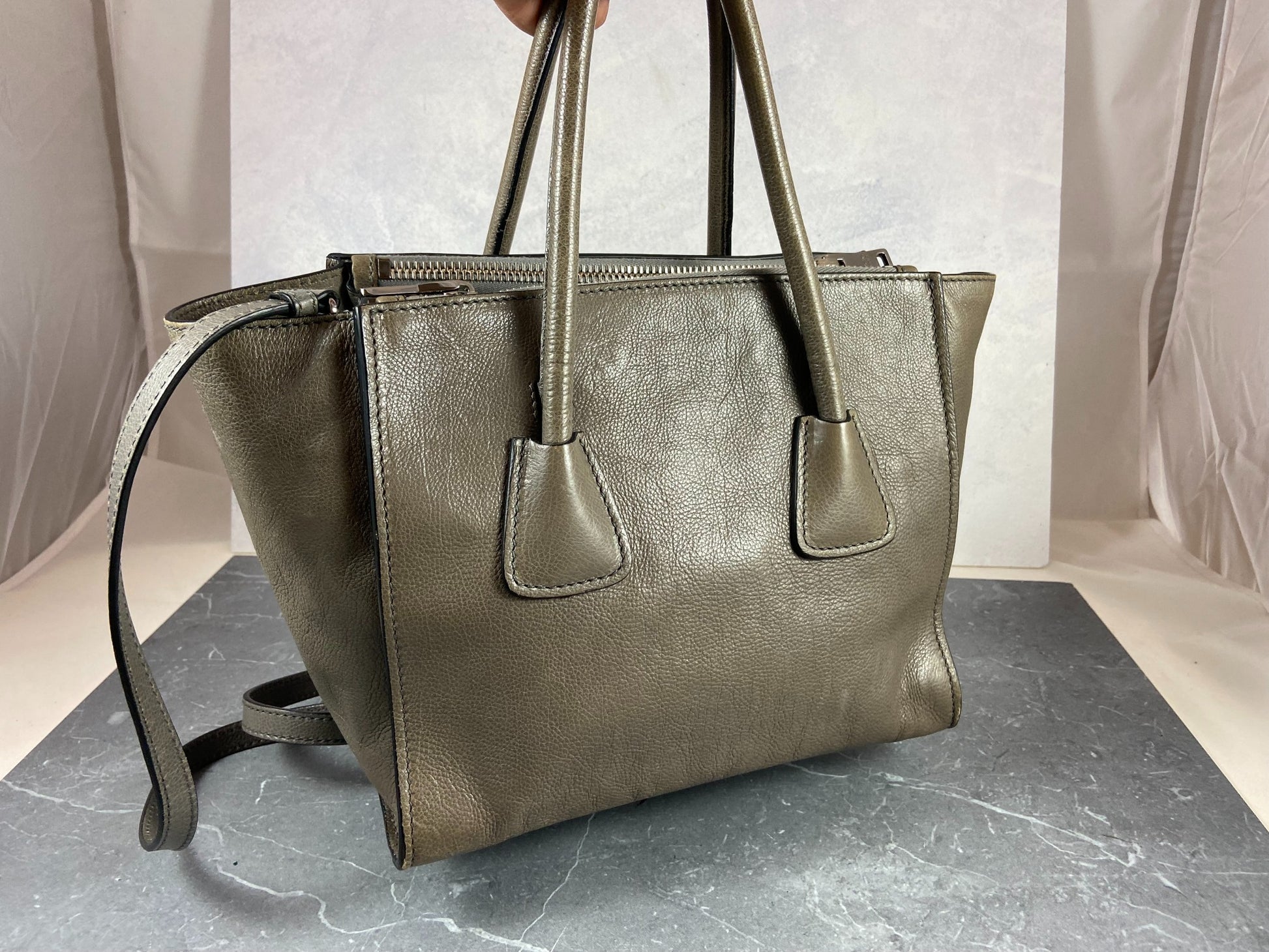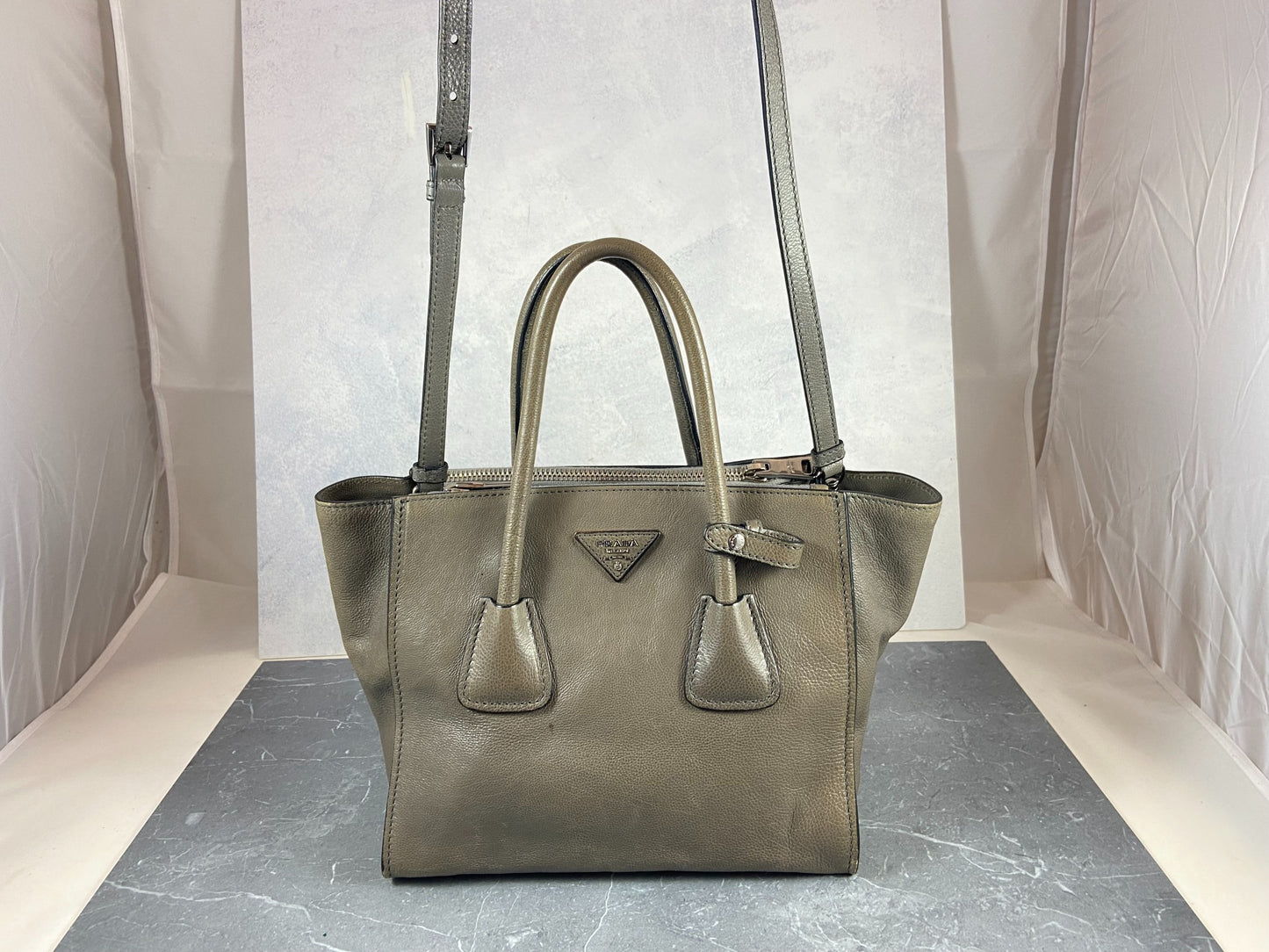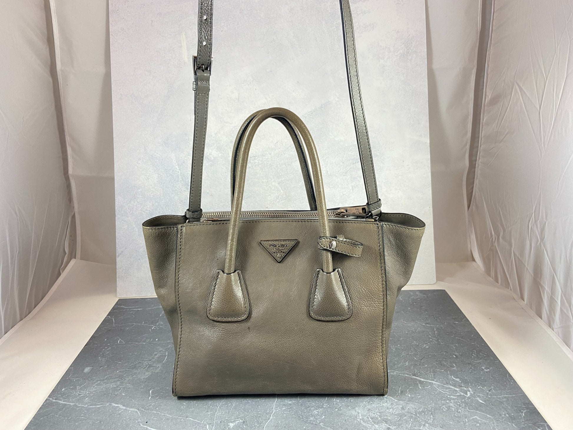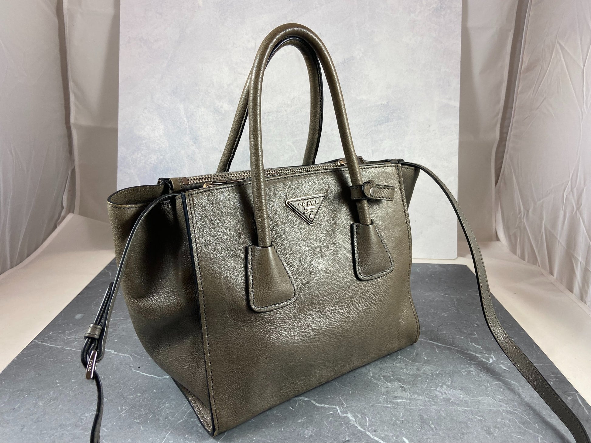 - Prada Twin Zip Hand / Shoulder Bag Grey Leather